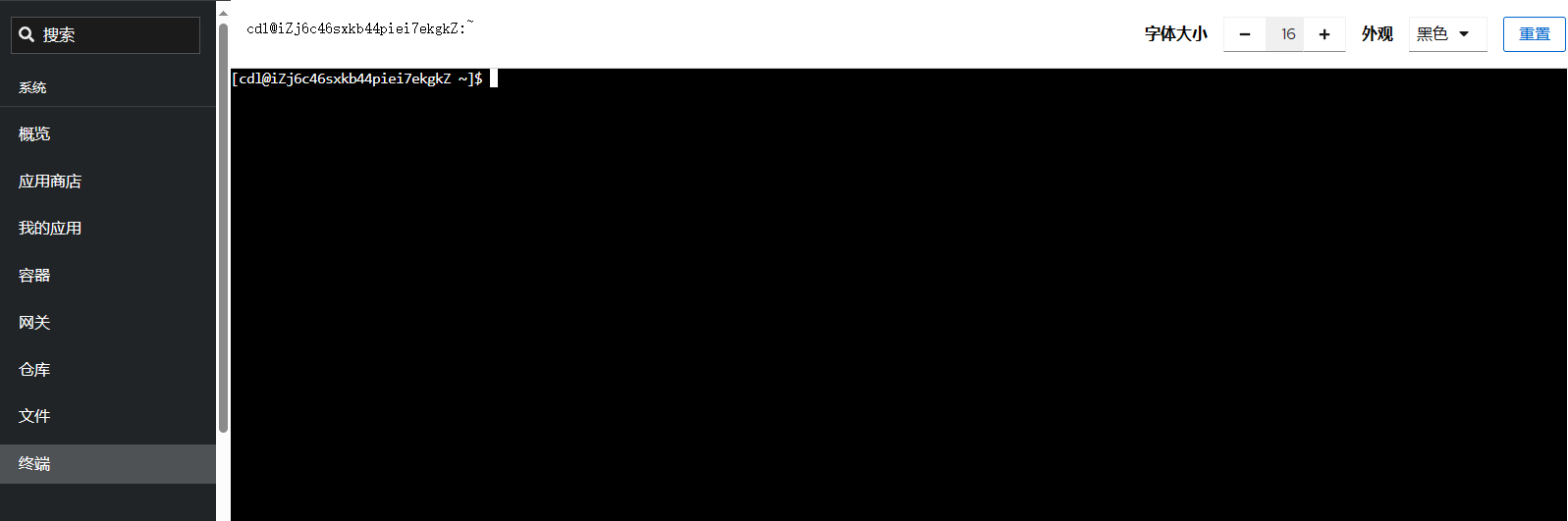 Websoft9 控制台内置 Web 终端,它可以免密连接 Websoft9 控制台所在的服务器(局限性),实现命令和文件操作: