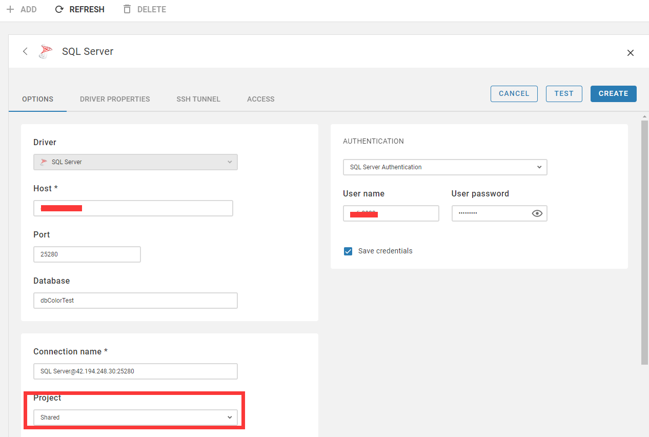 Enter the connection information, including the host address, port, account password, and then click Save.